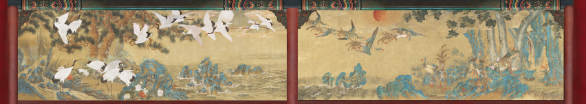 ‘창덕궁 부벽화(浮壁畫)’는 창덕궁 내 경훈각, 희정당, 대조전의 각 전각에 2점씩 마주보도록 배치된, 총 6점의 벽화로 구성된 궁중회화다. 이번 미디어월 콘텐츠에서는 이 여섯 점의 작품이 한 화면에 장대하게 펼쳐지며, 실제 출입이 제한된 전각 내부를 거닐며 그림을 감상하는 듯한 감동을 선사한다.