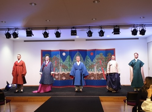 전시 개막 전날인 20일에는 현지 외교 사절·문화예술계 인사·언론 등을 초청한 사전 행사가 열렸다. 이 자리에서는 누비 한복을 중심으로 한 패션쇼와 한식 시식 행사가 진행되며 한국의 멋과 맛을 동시에 소개했다. 가장 큰 화제를 모은 순간은 유정현 주벨기에유럽연합 대사의 깜짝 등장이었다.유 대사는 푸른색 누비 두루마기를 차려입고 런웨이를 걸어 참석자들로부터 큰 박수와 환호를 받았다.
