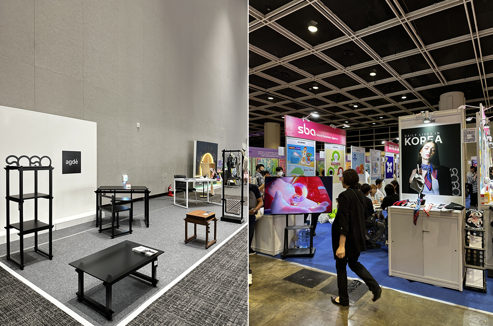 (좌) 전통문화 청년 가구작가 발굴 사례, ‘아그데’ (2023 세계유산박람회) (우) 2024 홍콩국제라이센싱쇼