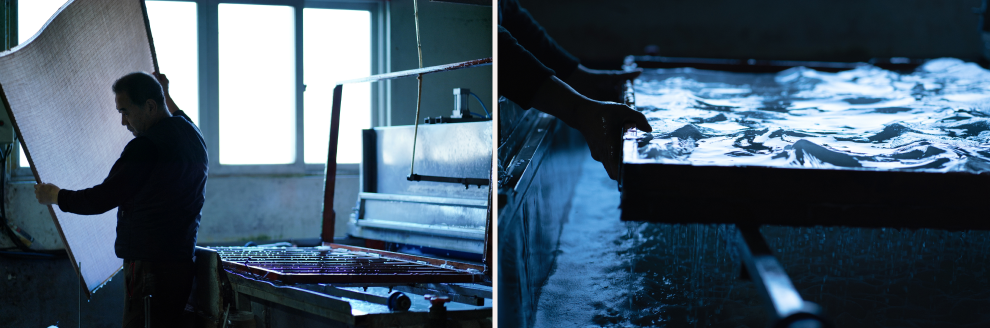 Kim In-soo began learning Hanji-making in Cheongbo Paper Mill in 1975 and later established Yongin Hanji in 1998 within the Jeonju Hanji Cooperative in Palbok-dong. They produce various types of Hanji from sunji(pure paper) for calligraphy and painting to jumchi(layered pouch paper) for burial shrouds, and unyongji(floating paper) for crafts.