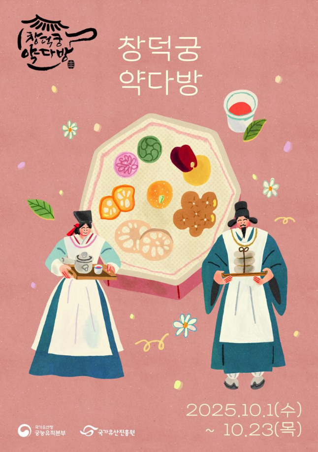 국가유산청 궁능유적본부(본부장 이재필)는 국가유산흥원(원장 이귀영)과 함께 10월 1일부터 23일까지 2025년 하반기 「창덕궁 약다방」을 개최한다.