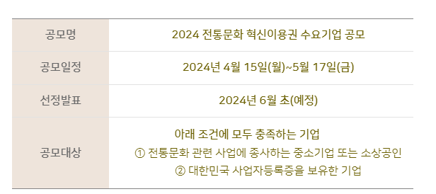 <2024 전통문화혁신이용권 수요기업 공모>